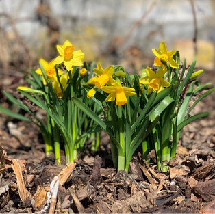The hellebores are popping, winter aconites have cleared the ground and shown their happy faces, and the snow drops are in their glory. Yesterday the first daffodils opened. Along the driveway the "white forsythia" is blooming.